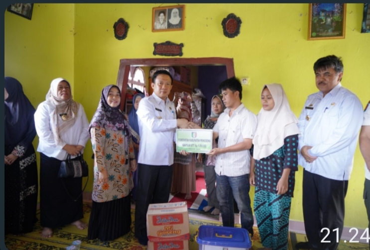Bantuan diserahkan langsung oleh Pj.Bupati Pringsewu Marindo Kurniawan didampingi Sekda Pringsewu Heri Iswahyudi beserta kepala perangkat daerah terkait, kepada keluarga korban, Rabu (6/3/2024).