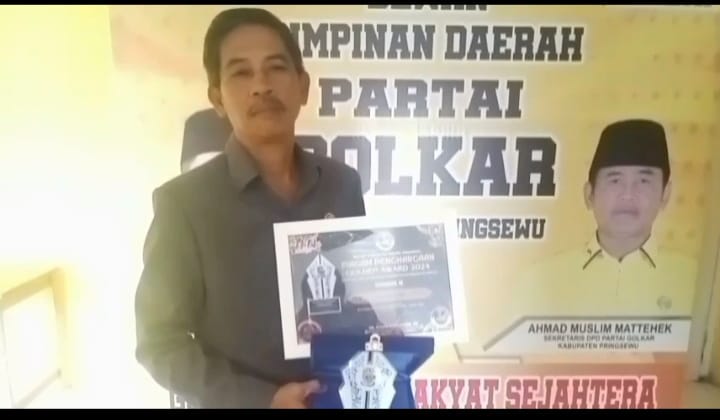 Atensi Publik Com -Penyerahan golden award Iwo-Indonesia kepada ketua dewan perwakilan rakyat daerah tingkat dua kabupaten Pringsewu, yang langsung diterima oleh bapak Suherman, SE, Jumat, 15/3/2024.