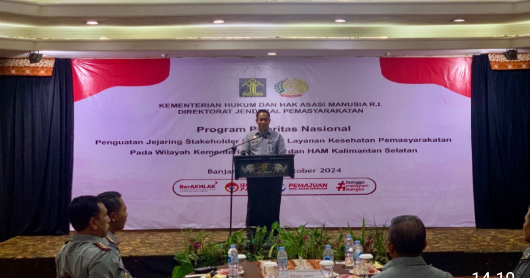 Lembaga Pemasyarakatan (Lapas) Narkotika Kelas IIA Karang Intan, ikuti kegiatan Penguatan Jejaring Stakeholder Eksternal Layanan Kesehatan Pemasyarakatan di lingkungan Kantor Wilayah Kementerian Hukum dan Hak Asasi Manusia (Kemenkumham) Kalimantan Selatan, bertempat di Swiss-Belhotel Borneo Banjarmasin, Selasa (8/10).