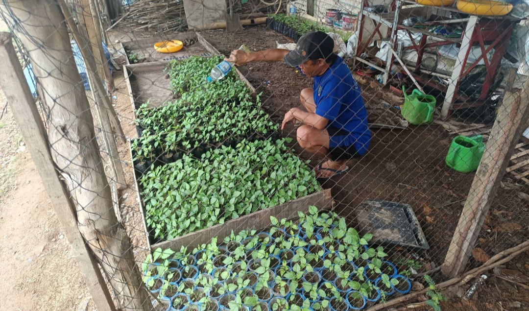 “Bibit cabai kita tumbuhkan di polibag, pada ukuran tertentu dipindahkan ke lahan pertanian, namun belum sepenuhnya dapat dipindahkan karena kondisi tanah yang belum diolah, namun sebagian polibag sudah.