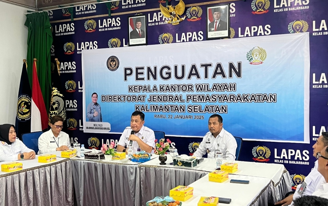 Kepala Lembaga Pemasyarakatan (Lapas) Narkotika Kelas IIA Karang Intan, Edi Mulyono, mengikuti kegiatan penguatan yang dipimpin langsung oleh Kepala Kantor Wilayah Direktorat Jenderal Pemasyarakatan (Ditjenpas) Kalimantan Selatan, Mulyadi, Rabu (22/1/2025).