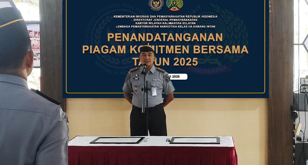 Lembaga Pemasyarakatan (Lapas) Narkotika Kelas IIA Karang Intan mengukuhkan komitmennya untuk membangun Zona Integritas dengan melaksanakan penandatanganan komitmen bersama menuju Wilayah Bebas Korupsi (WBK) dan Wilayah Birokrasi Bersih dan Melayani (WBBM).