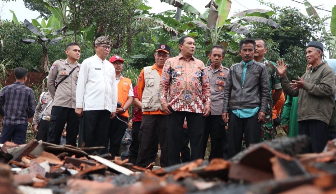 Penjabat (Pj) Bupati Sumedang Yudia Ramli menyerahkan langsung bantuan kepada korban kebakaran yang terjadi di Dusun Cikohkol, Desa Cigendel, Kecamatan Pamulihan, Sumedang, Kamis (30/1/2025).