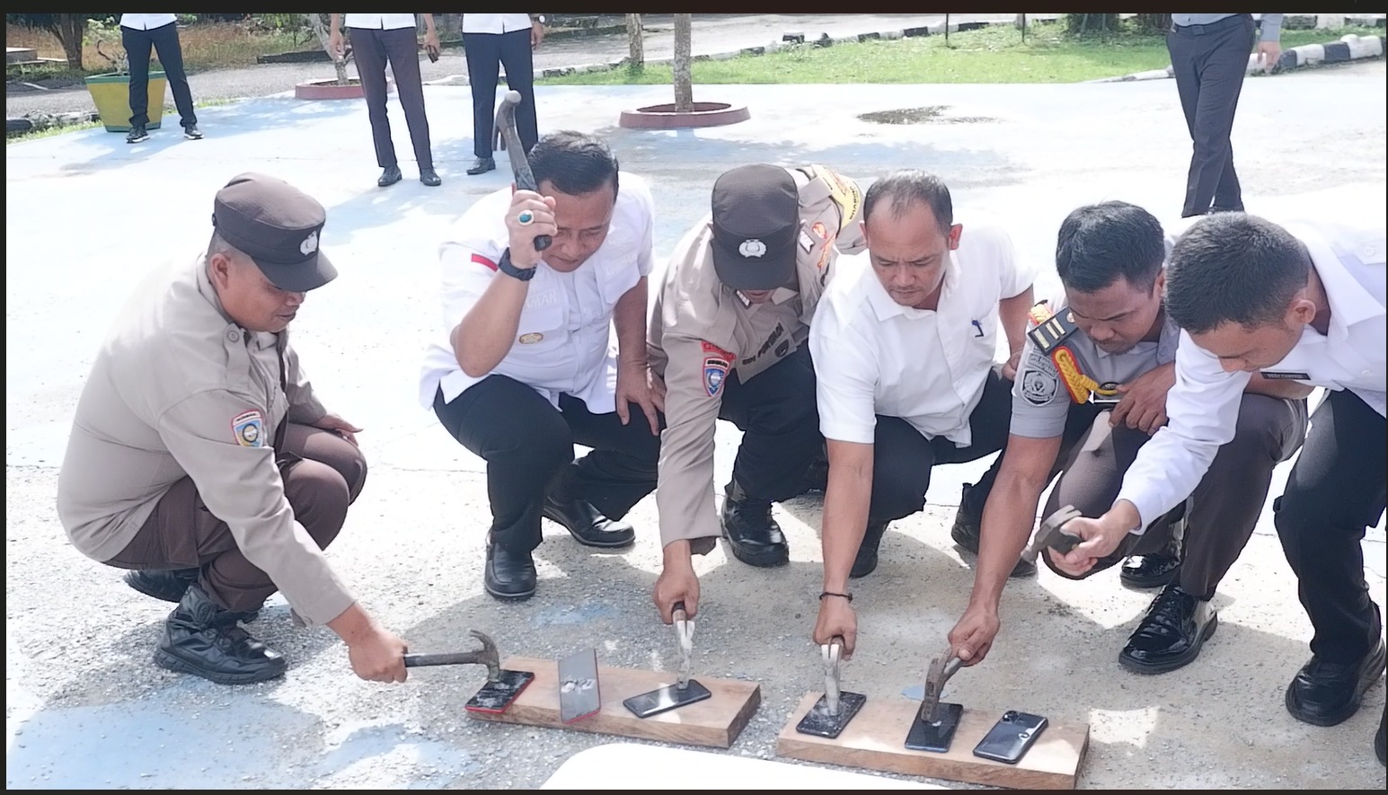 Kegiatan ini mencakup penghancuran 365 unit handphone yang berhasil disita melalui razia rutin dan insidental sepanjang tahun 2024 hingga Juni 2025.