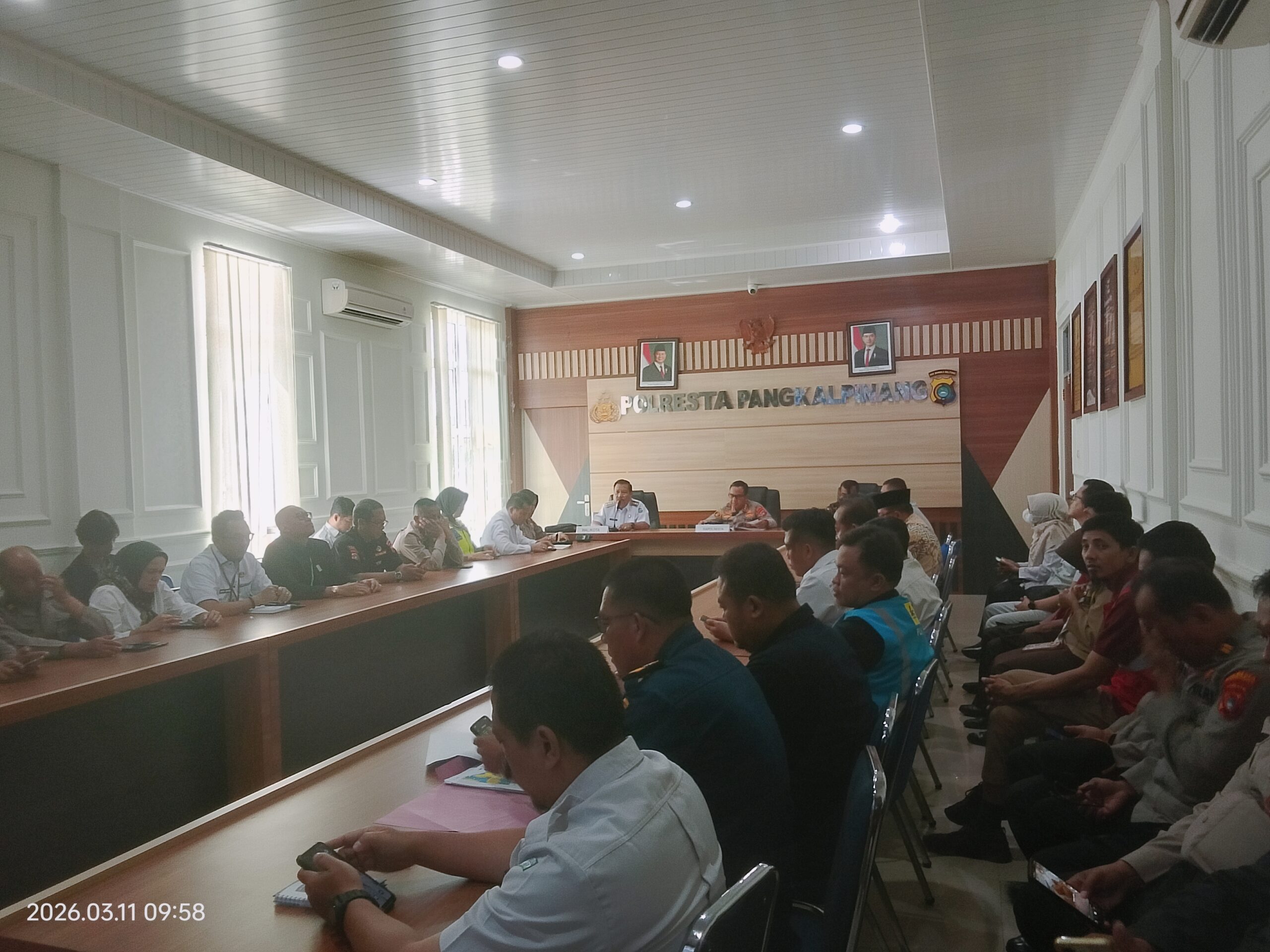 “Pertama-tama tentunya kami selaku Pemerintah Kota Pangkalpinang mengucapkan terima kasih ke bapak Kapolresta Kota Pangkalpinang yang selalu membersamai masyarakat Kota Pangkalpinang. Sehingga sampai dengan hari ini, kita melihat situasi kondisi di lapangan itu kondusif,” ujar Prof.Udin di ruang SRC Mapolresta Pangkalpinang, Rabu 11 Maret 2026.